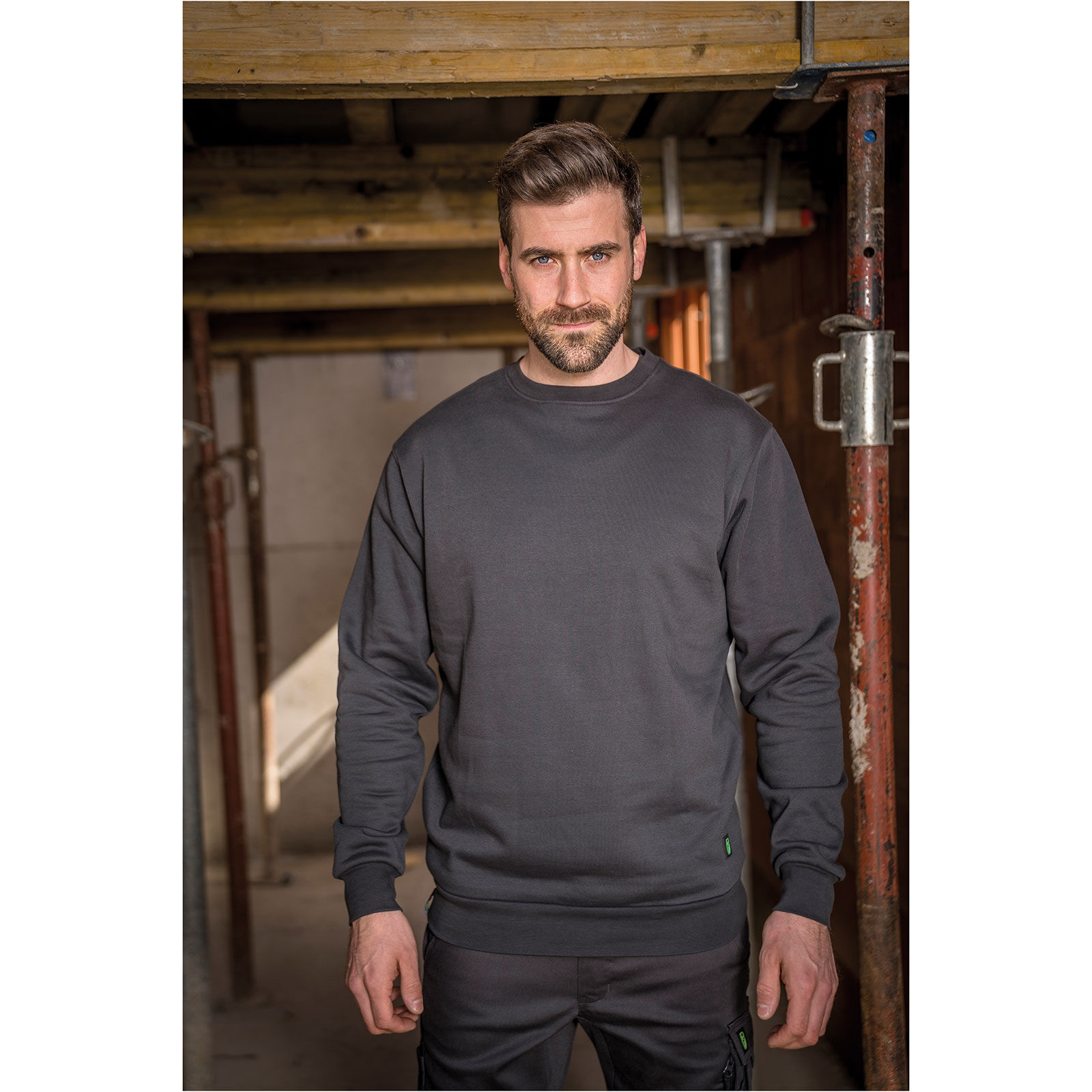 Aus klassicher Sweatware. Schnittführung Unisex. Nähte Ton in Ton. Rundhals mit Nackenband. Aufhänger innen. Eingesetzte Ärmel. 6 cm breite Rippbündchen am Saum und den Ärmelabschlüssen. Seitennähte. Bei 60 °C waschfest und trocknergeeignet. Antibakterielle, Antigeruchs- und Antipilling-Ausrüstung. Material: 60 % Baumwolle, 40 % Polyester (3-fädige Sweatware), 290 g/m². Größen: S-XL.