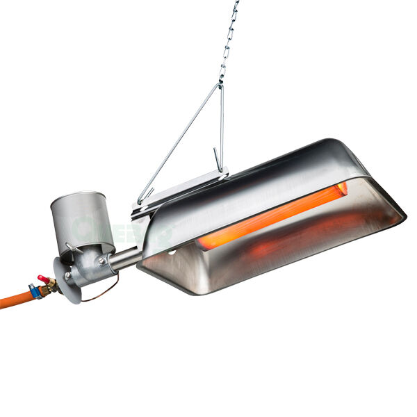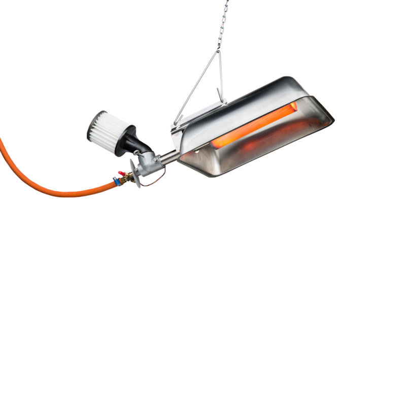 Für Propangas. Rostfreie Stahlkonstruktion. Stufenloser Regelbereich 20-1400 mbar. Gasregler und Anschlussschlauch optional. Gasverbrauch 38 - 360 g/h. Kapazität 0,5-5 kW.