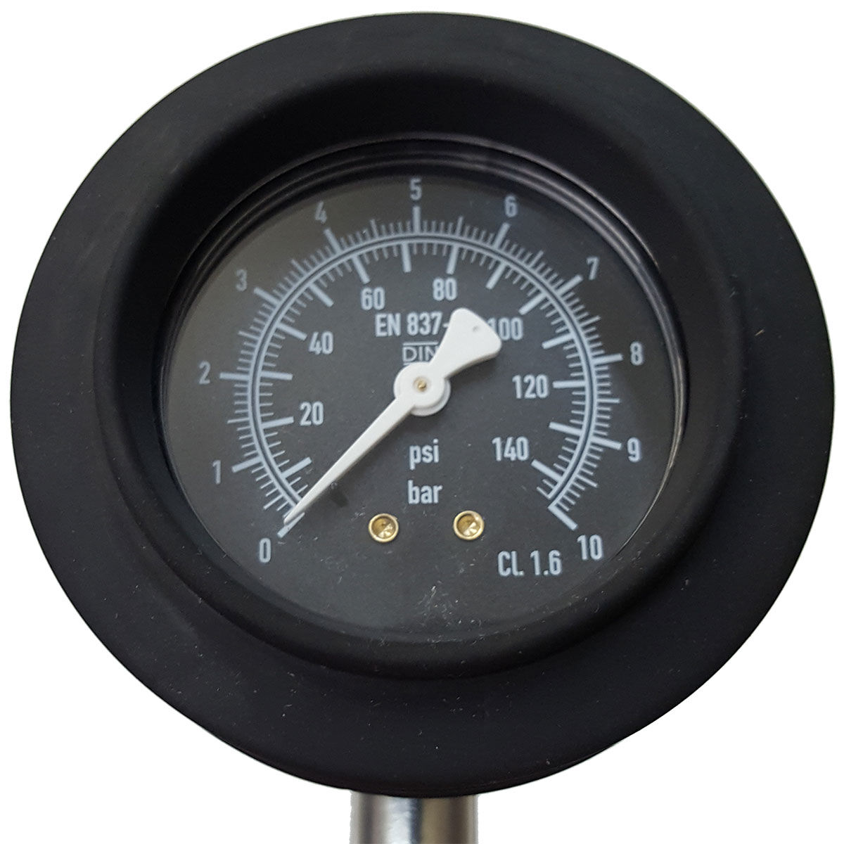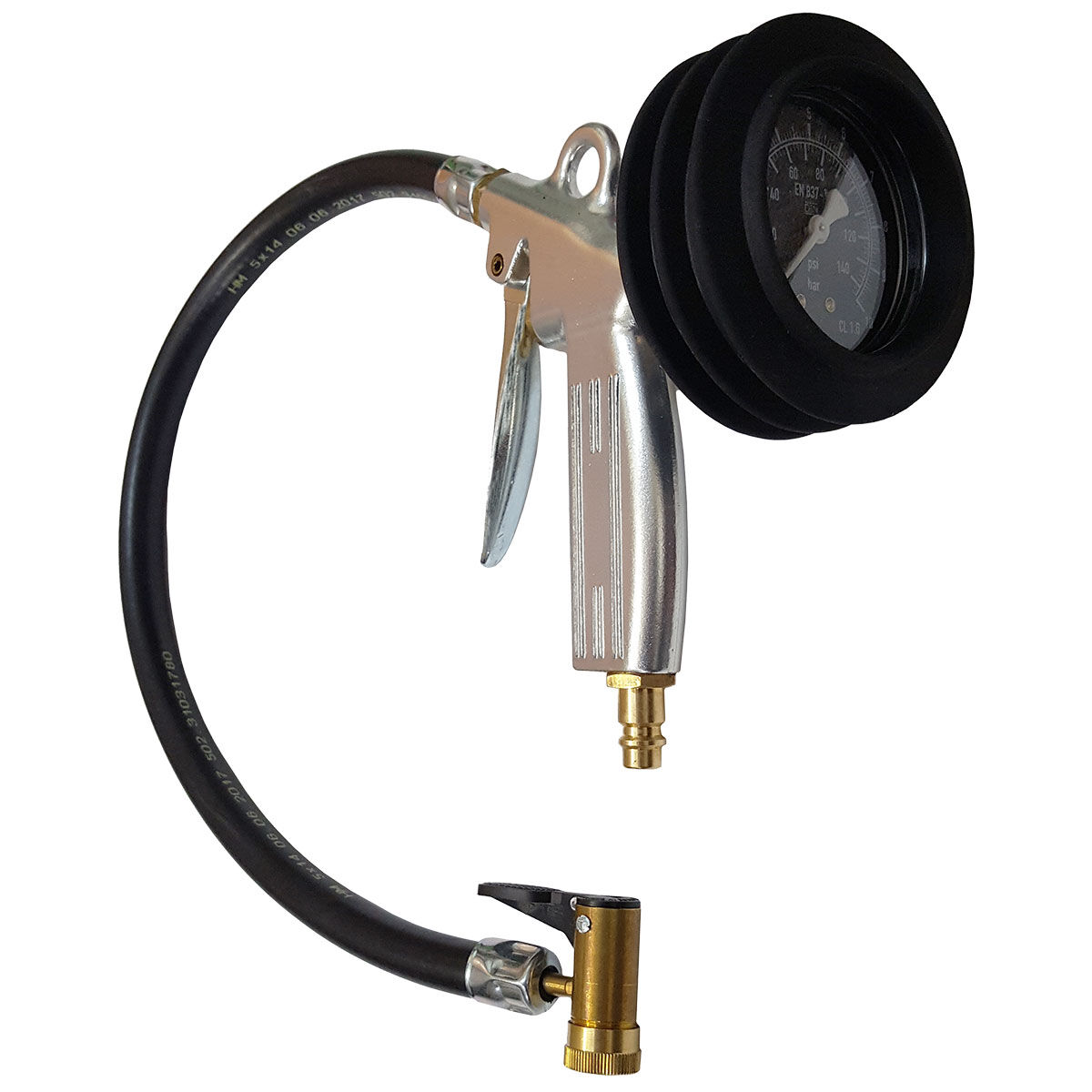 Mit Pistolengriff, stossgeschütztem Präzisionsmanometer, drehbarem Füllschlauch. Nicht eichfähig.