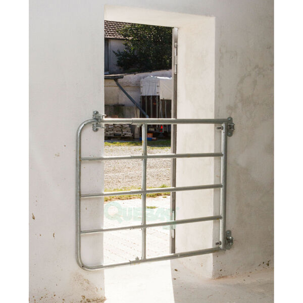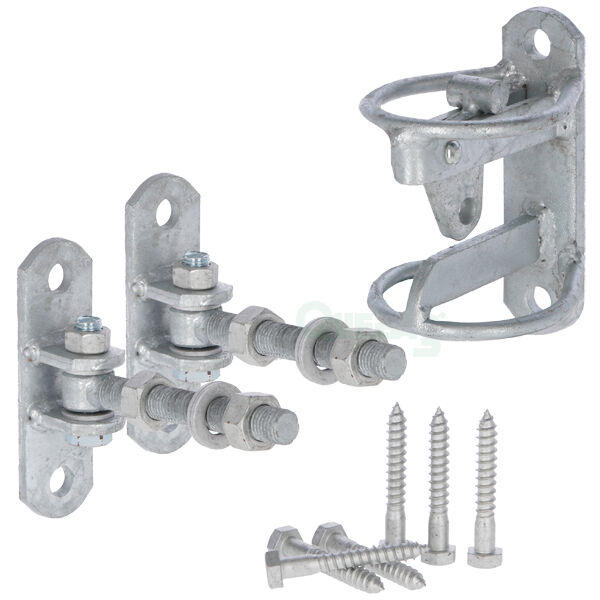 Verzinkt. 110 cm hoch. Längenverstellbar. Inklusive Montageset (2 Scharniere, 1 Schließoption und 6 Holzschrauben 12 x 80 mm). Das Tor sollte nach innen zur Weide zu öffnen sein!